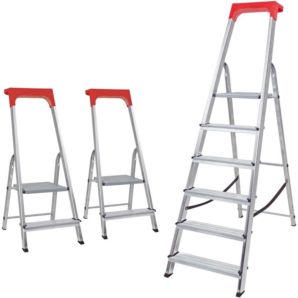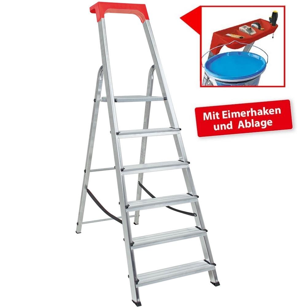 1x Alu-Stufenleiter mit 6 Stufen, obere Ablage mit Eimerhaken