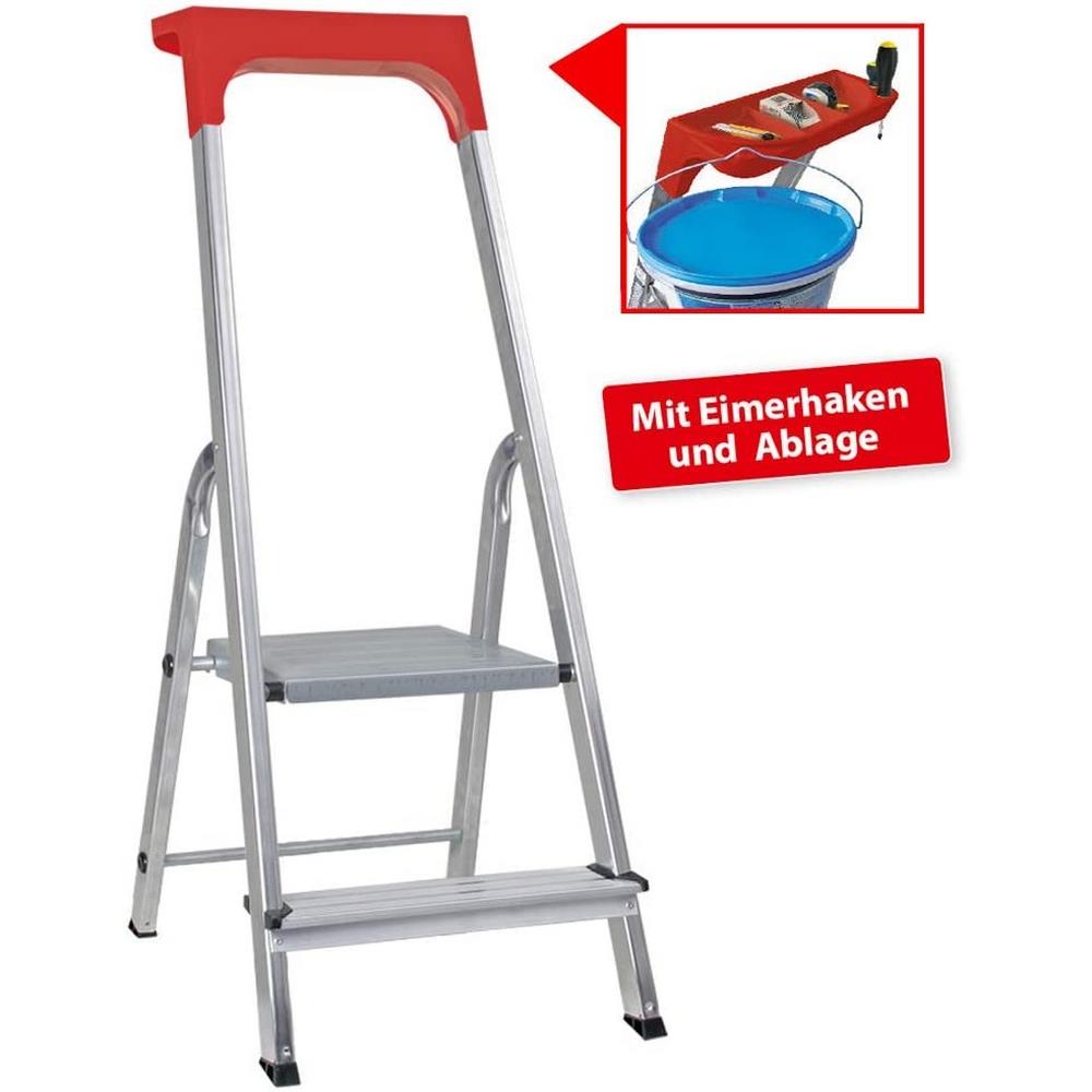 2x Alu-Stufenleiter mit 2 Stufen, obere Ablage mit Eimerhaken