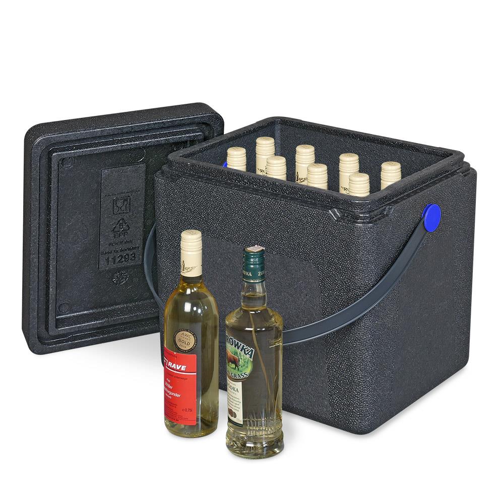 Die Box ist wasserdicht und transportiert problemlos Eiswürfel, Kühlakkus oder Crushed Eis. Mit einer nutzbaren Höhe von 310 mm passen auch Flaschen prima hinein. Das Grundmaß entspricht GN 1/4. Die Box aus EPP ist leicht und robust, ob heiß oder kalt, von -40°C bis +120°C bleibt alles gut isoliert.