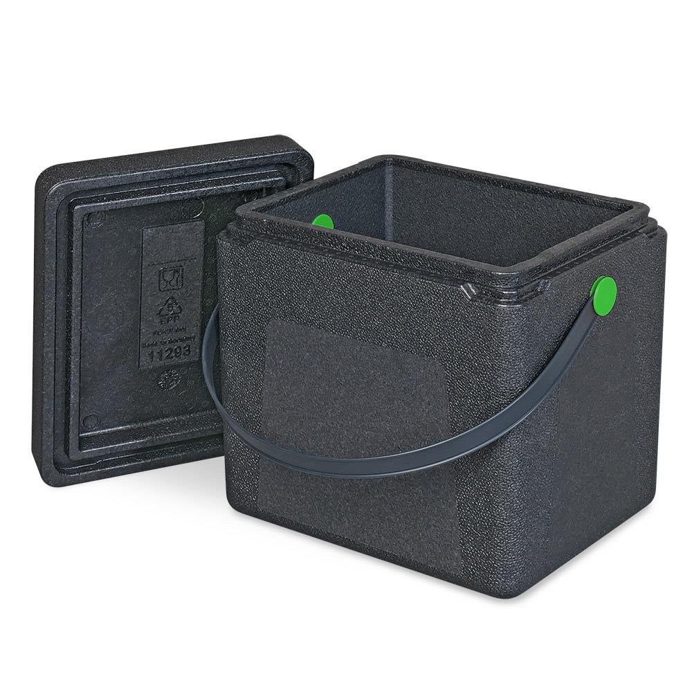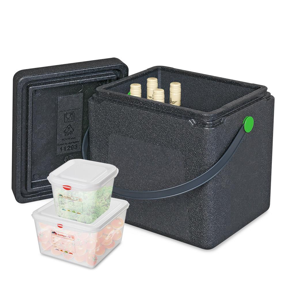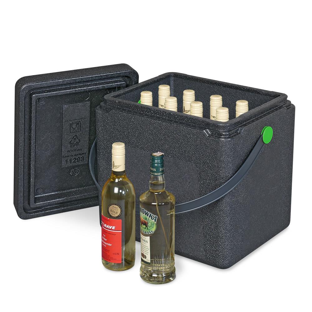 Die Box ist wasserdicht und transportiert problemlos Eiswürfel, Kühlakkus oder Crushed Eis. Mit einer nutzbaren Höhe von 310 mm passen auch Flaschen prima hinein. Das Grundmaß entspricht GN 1/4. Die Box aus EPP ist leicht und robust, ob heiß oder kalt, von -40°C bis +120°C bleibt alles gut isoliert.