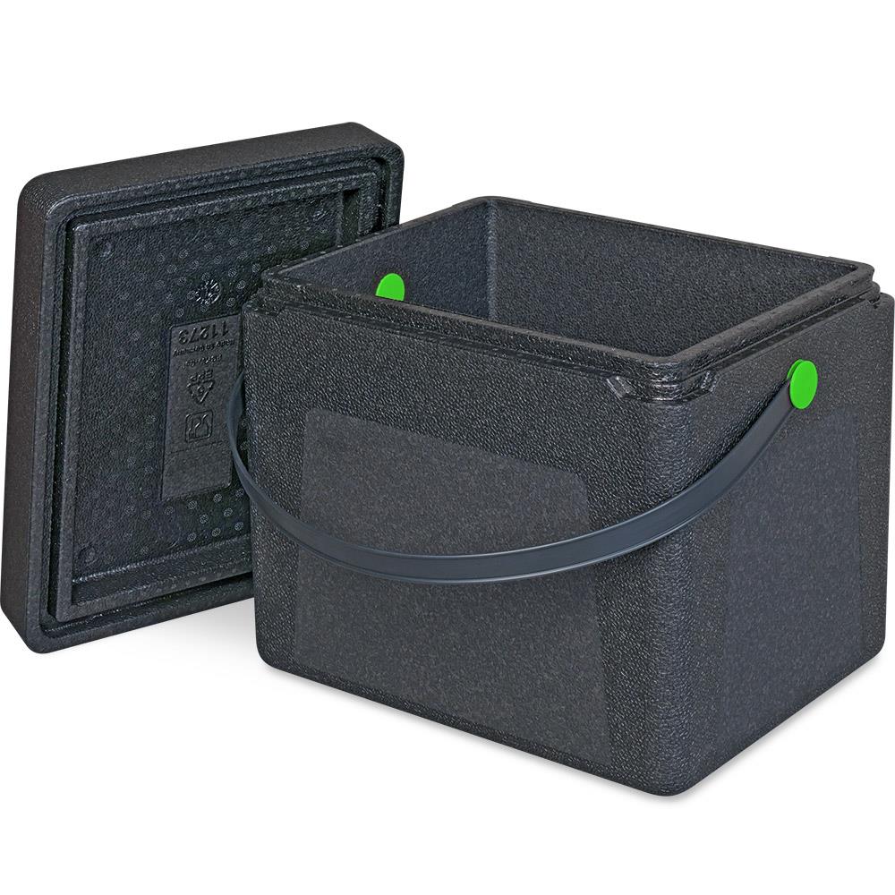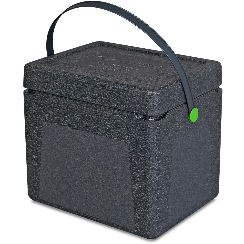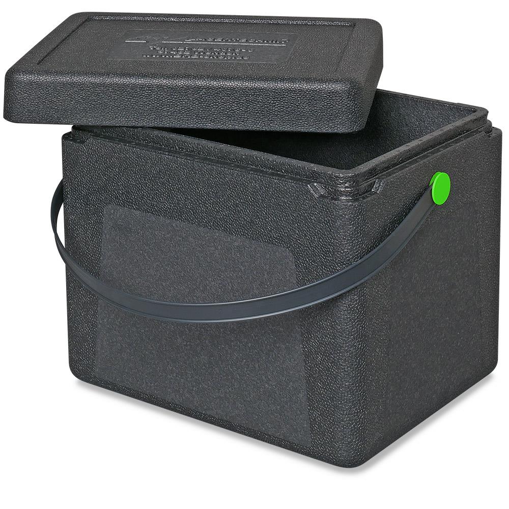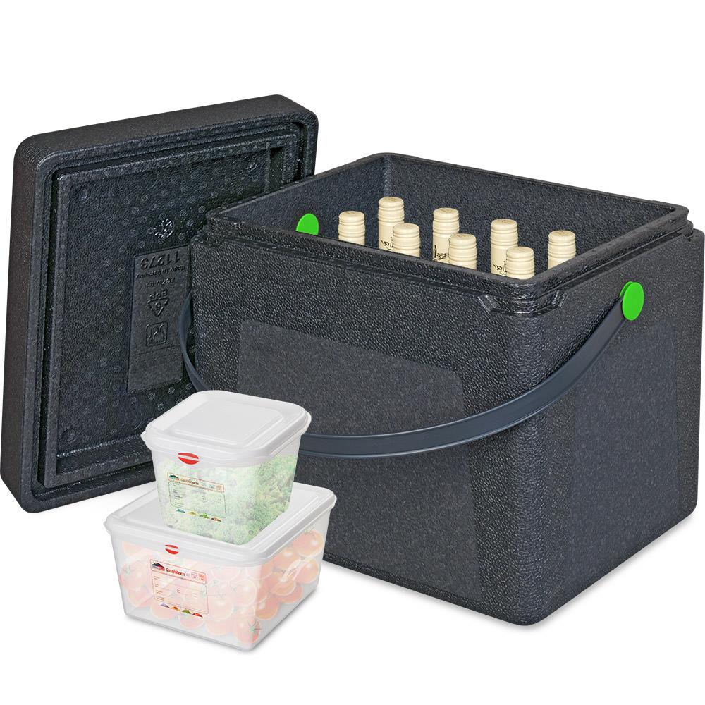Die Box ist wasserdicht und transportiert problemlos Eiswürfel, Kühlakkus oder Crushed Eis. Mit einer nutzbaren Höhe von 330 mm passen auch Flaschen prima hinein. Das Grundmaß entspricht GN 1/4. Die Box aus EPP ist leicht und robust, ob heiß oder kalt, von -40°C bis +120°C bleibt alles gut isoliert.