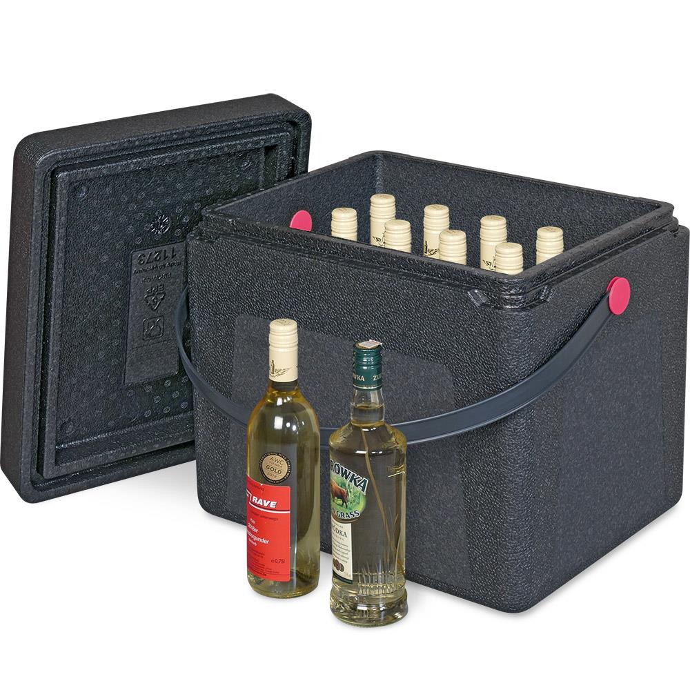 Die Box ist wasserdicht und transportiert problemlos Eiswürfel, Kühlakkus oder Crushed Eis. Mit einer nutzbaren Höhe von 330 mm passen auch Flaschen prima hinein. Das Grundmaß entspricht GN 1/4. Die Box aus EPP ist leicht und robust, ob heiß oder kalt, von -40°C bis +120°C bleibt alles gut isoliert.
