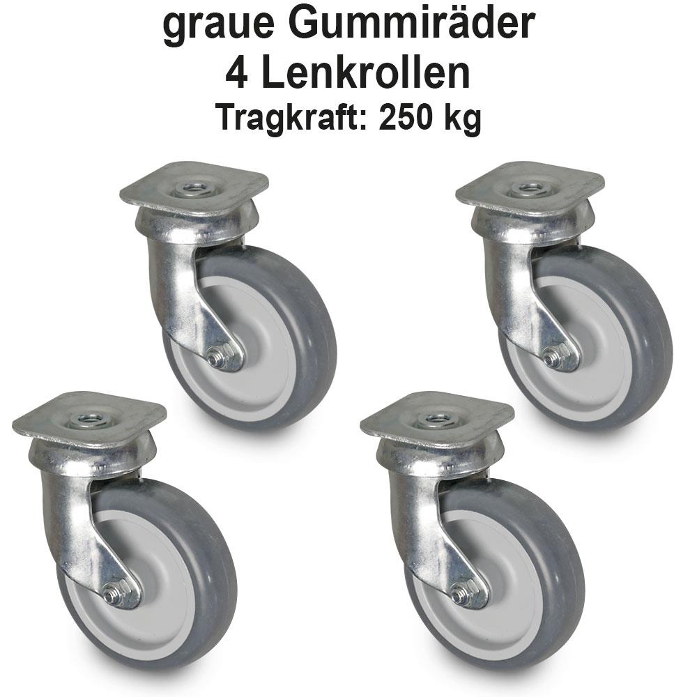 • 4 Kugelgelagerte Lenkrollen, Gehäuse aus verzinktem Stahl