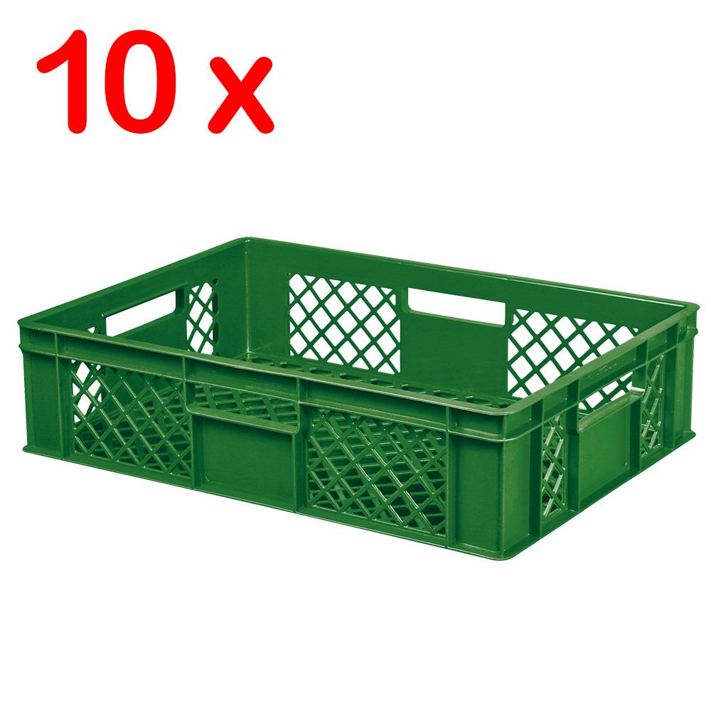 Das fahrbare Regal ist mit 10 robusten Euro-Stapelkästen, Ausführung durchbrochen, im Format 600x400x150 mm bestückt. Diese Stapelbehälter überzeugen durch erstklassige Qualität. Die Behälter sind leicht, reinigungsfreundlich, extrem stabil und langlebig, spülmaschinenfest und gegen die meisten Chemikalien beständig. Kältebeständig bis -40°C, hitzebeständig bis +60°C.