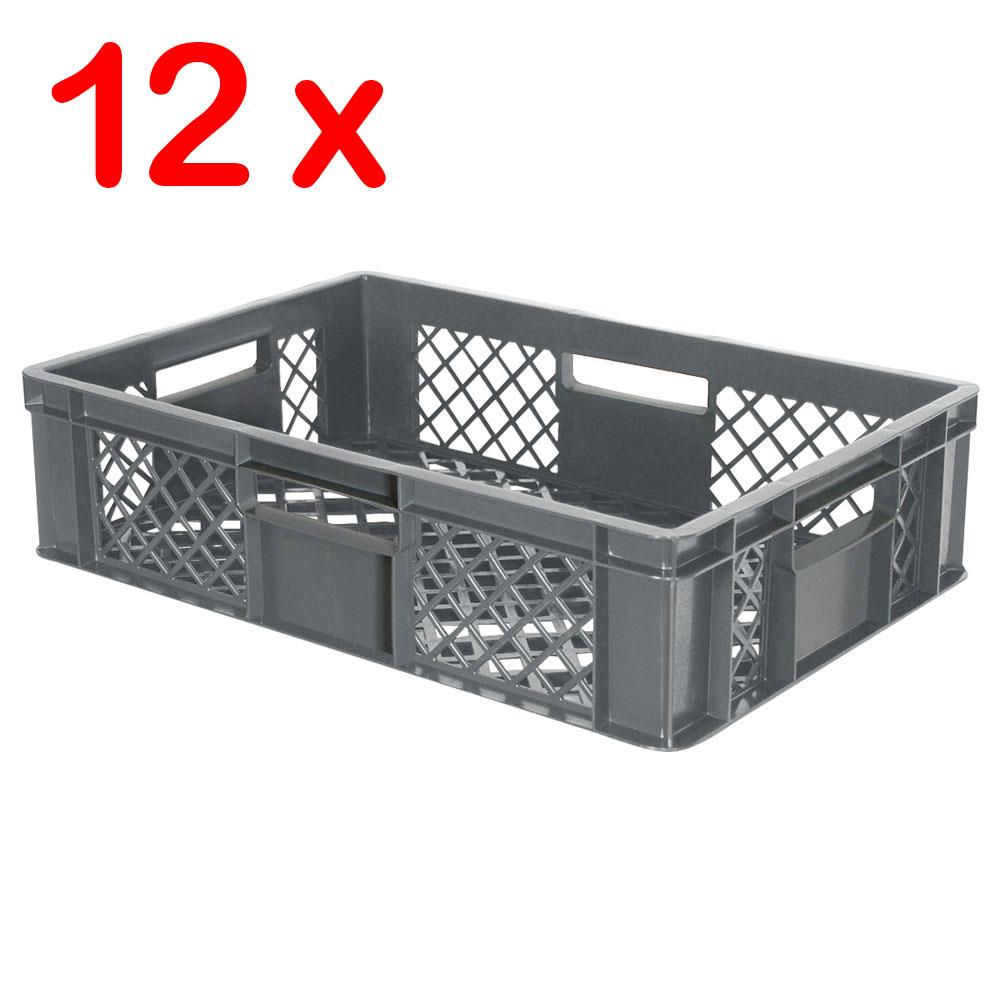Das fahrbare Regal ist mit 12 robusten Euro-Stapelkästen, Ausführung durchbrochen, im Format 600x400x150 mm bestückt. Diese Stapelbehälter überzeugen durch erstklassige Qualität. Die Behälter sind leicht, reinigungsfreundlich, extrem stabil und langlebig, spülmaschinenfest und gegen die meisten Chemikalien beständig. Kältebeständig bis -40°C, hitzebeständig bis +60°C.