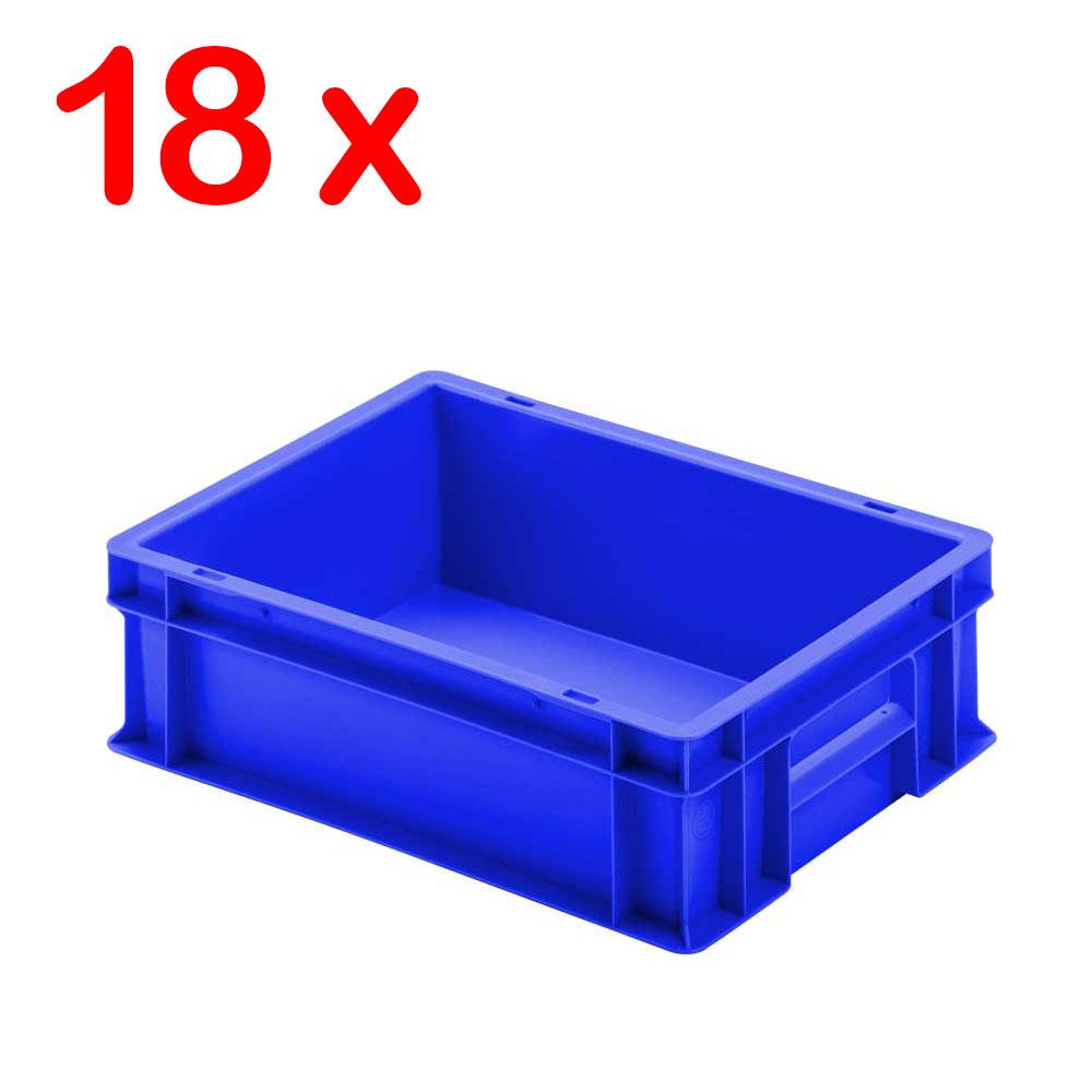 Das fahrbare Regal ist mit 18 robusten Euro-Stapelboxen im Format 400x300x120 mm bestückt. Diese Eurobehälter überzeugen durch erstklassige Qualität. Die Kunststoffboxen sind die idealen Lager- und Transportbehälter für Industrie und Handwerk. Glatte Innenwände ermöglichen eine leichte und hygienische Reinigung der Boxen. Die Behälter sind extrem stabil und langlebig, spülmaschinenfest und gegen die meisten Chemikalien beständig. Kältebeständig bis -20°C, hitzebeständig bis +80°C.