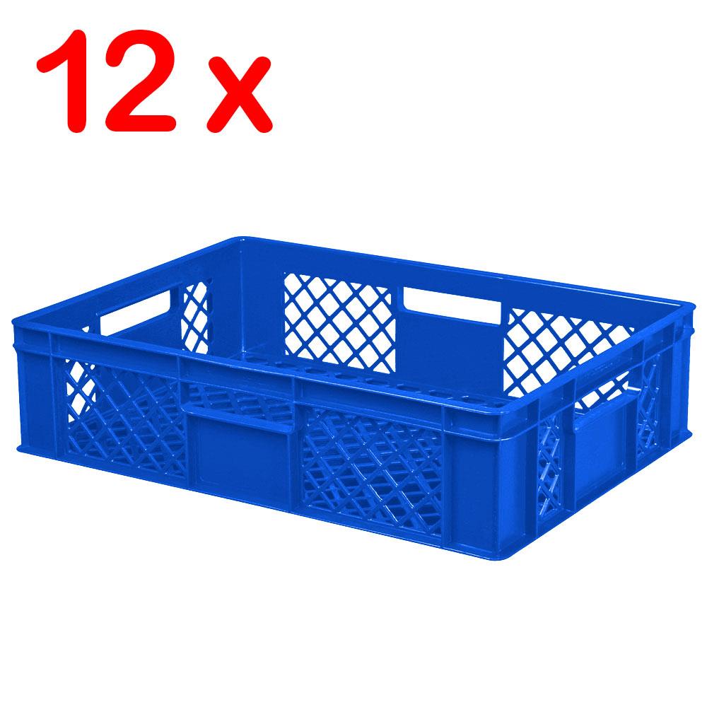 Das fahrbare Regal ist mit 12 robusten Euro-Stapelkästen, Ausführung durchbrochen, im Format 600x400x150 mm bestückt. Diese Stapelbehälter überzeugen durch erstklassige Qualität. Die Behälter sind leicht, reinigungsfreundlich, extrem stabil und langlebig, spülmaschinenfest und gegen die meisten Chemikalien beständig. Kältebeständig bis -40°C, hitzebeständig bis +60°C.