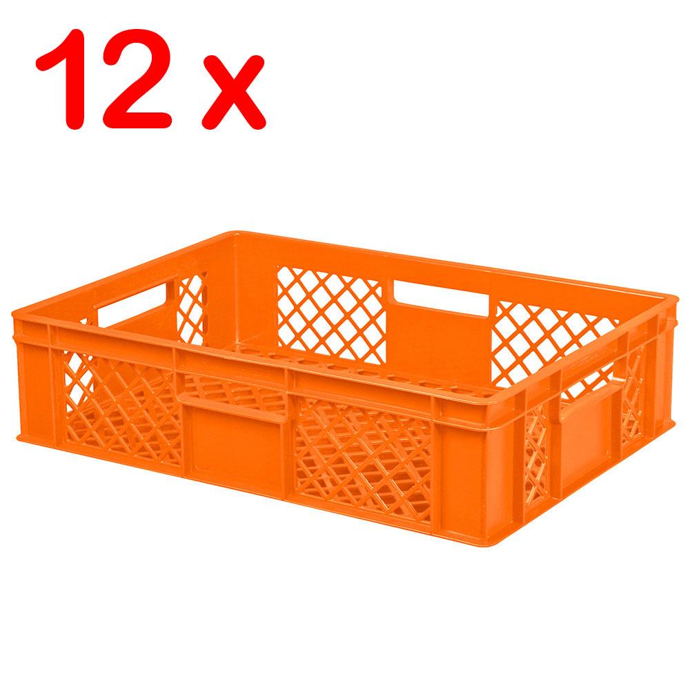 Das fahrbare Regal ist mit 12 robusten Euro-Stapelkästen, Ausführung durchbrochen, im Format 600x400x150 mm bestückt. Diese Stapelbehälter überzeugen durch erstklassige Qualität. Die Behälter sind leicht, reinigungsfreundlich, extrem stabil und langlebig, spülmaschinenfest und gegen die meisten Chemikalien beständig. Kältebeständig bis -40°C, hitzebeständig bis +60°C.
