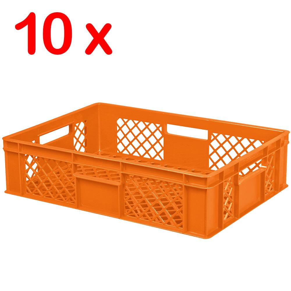 Das fahrbare Regal ist mit 10 robusten Euro-Stapelkästen, Ausführung durchbrochen, im Format 600x400x150 mm bestückt. Diese Stapelbehälter überzeugen durch erstklassige Qualität. Die Behälter sind leicht, reinigungsfreundlich, extrem stabil und langlebig, spülmaschinenfest und gegen die meisten Chemikalien beständig. Kältebeständig bis -40°C, hitzebeständig bis +60°C.