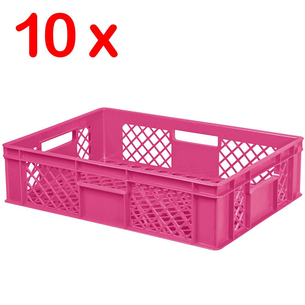 Das fahrbare Regal ist mit 10 robusten Euro-Stapelkästen, Ausführung durchbrochen, im Format 600x400x150 mm bestückt. Diese Stapelbehälter überzeugen durch erstklassige Qualität. Die Behälter sind leicht, reinigungsfreundlich, extrem stabil und langlebig, spülmaschinenfest und gegen die meisten Chemikalien beständig. Kältebeständig bis -40°C, hitzebeständig bis +60°C.