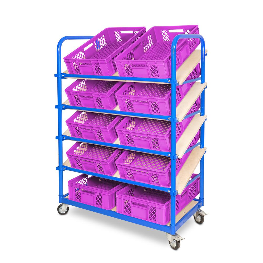 Dieser Schrägbodenregalwagen ist das ideale Transportmittel in Industriebereichen und für die Kommissionierung im Lager, wie auch für die Materialbereitstellung in der Montage bestens geeignet.