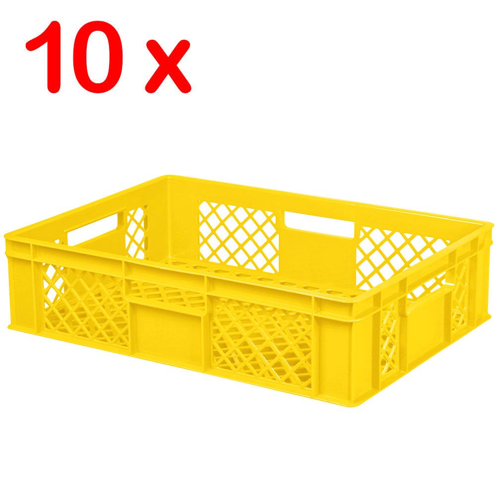 Das fahrbare Regal ist mit 10 robusten Euro-Stapelkästen, Ausführung durchbrochen, im Format 600x400x150 mm bestückt. Diese Stapelbehälter überzeugen durch erstklassige Qualität. Die Behälter sind leicht, reinigungsfreundlich, extrem stabil und langlebig, spülmaschinenfest und gegen die meisten Chemikalien beständig. Kältebeständig bis -40°C, hitzebeständig bis +60°C.
