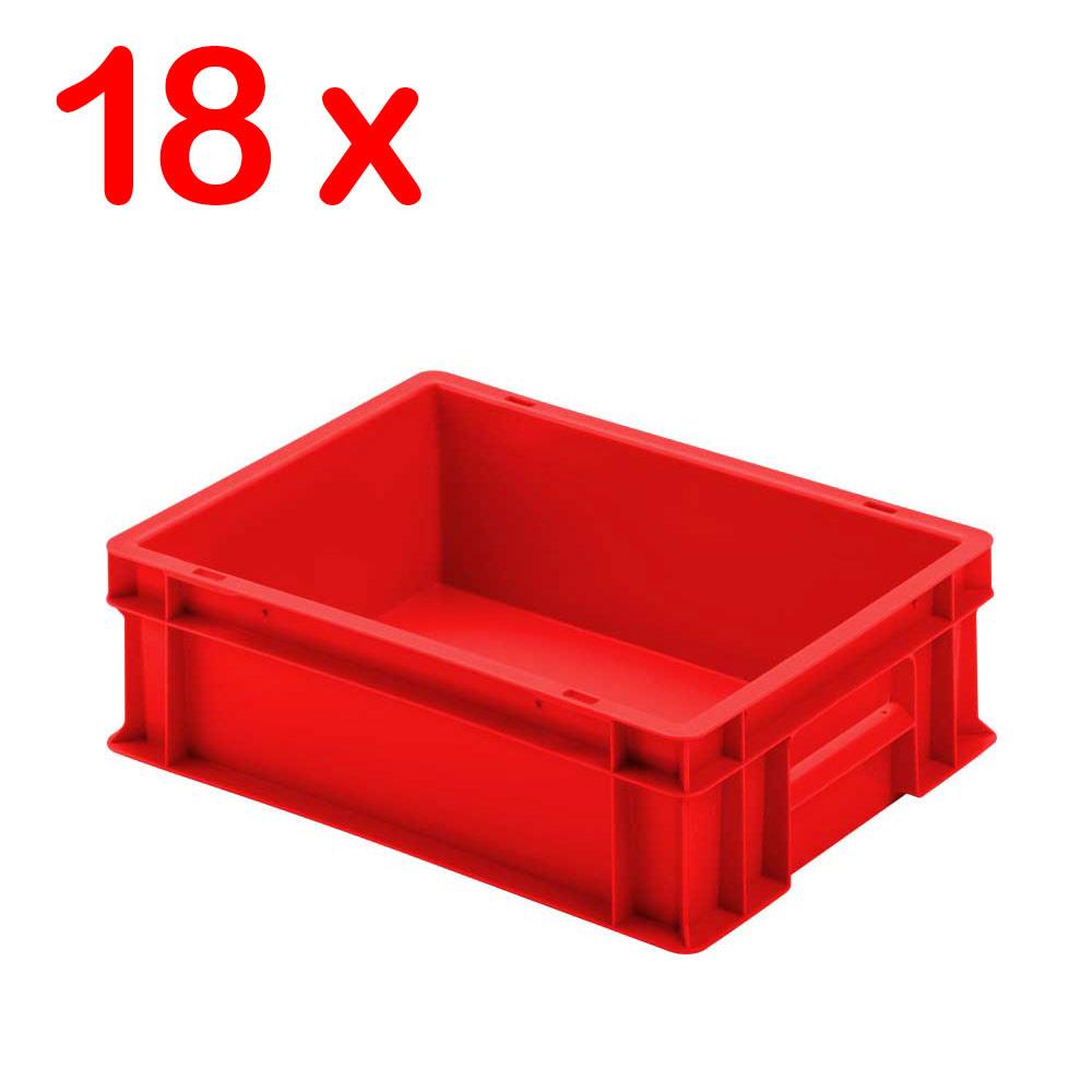 Das fahrbare Regal ist mit 18 robusten Euro-Stapelboxen im Format 400x300x120 mm bestückt. Diese Eurobehälter überzeugen durch erstklassige Qualität. Die Kunststoffboxen sind die idealen Lager- und Transportbehälter für Industrie und Handwerk. Glatte Innenwände ermöglichen eine leichte und hygienische Reinigung der Boxen. Die Behälter sind extrem stabil und langlebig, spülmaschinenfest und gegen die meisten Chemikalien beständig. Kältebeständig bis -20°C, hitzebeständig bis +80°C.
