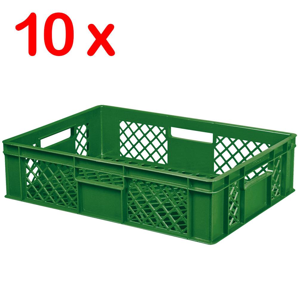 Das fahrbare Regal ist mit 10 robusten Euro-Stapelkästen, Ausführung durchbrochen, im Format 600x400x150 mm bestückt. Diese Stapelbehälter überzeugen durch erstklassige Qualität. Die Behälter sind leicht, reinigungsfreundlich, extrem stabil und langlebig, spülmaschinenfest und gegen die meisten Chemikalien beständig. Kältebeständig bis -40°C, hitzebeständig bis +60°C.