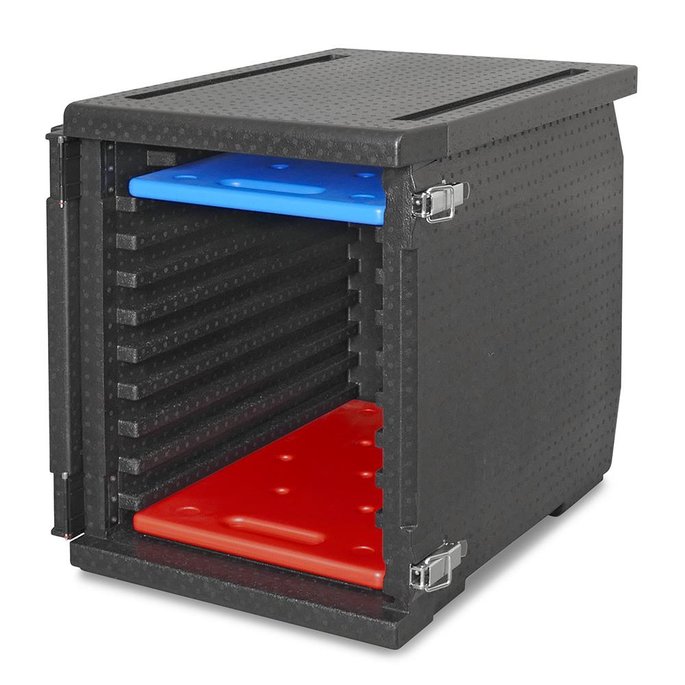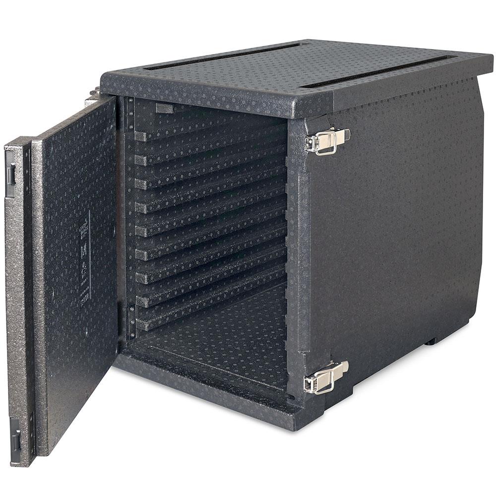 Frontlader Transport-Thermobox / Isolierbox für Backbleche u. Tabletts, 10 Einschubstege, BxTxH 540x740x685 mm, Inhalt 146 Liter
