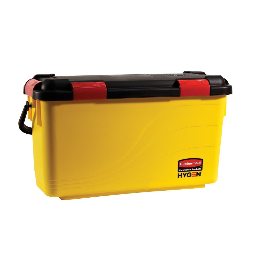Rubbermaid HYGEN Desinfektionseimer. Ideal zur Verwendung mit den Rubbermaid HYGEN Mikrofaser- Feuchtwischmopps und dem Quick-Connect-Halter von Rubbermaid. Der Putzeimer bietet eine einfach zu reinigende, leichte, nicht poröse Bauweise und ist geeignet für alle Rubbermaid HYGEN Reinigungswagen. Der gänzlich aus Polypropylen Kunststoff bestehende Eimer nimmt 10-20 Mikrofaser-Feuchtwischmopps auf. Mit der Flüssigkeit für einen Nassmopp lassen sich 23 m² reinigen; mit einem vollständig befüllten Eimer (20 Mopps) lassen sich bis zu 450 m² reinigen.