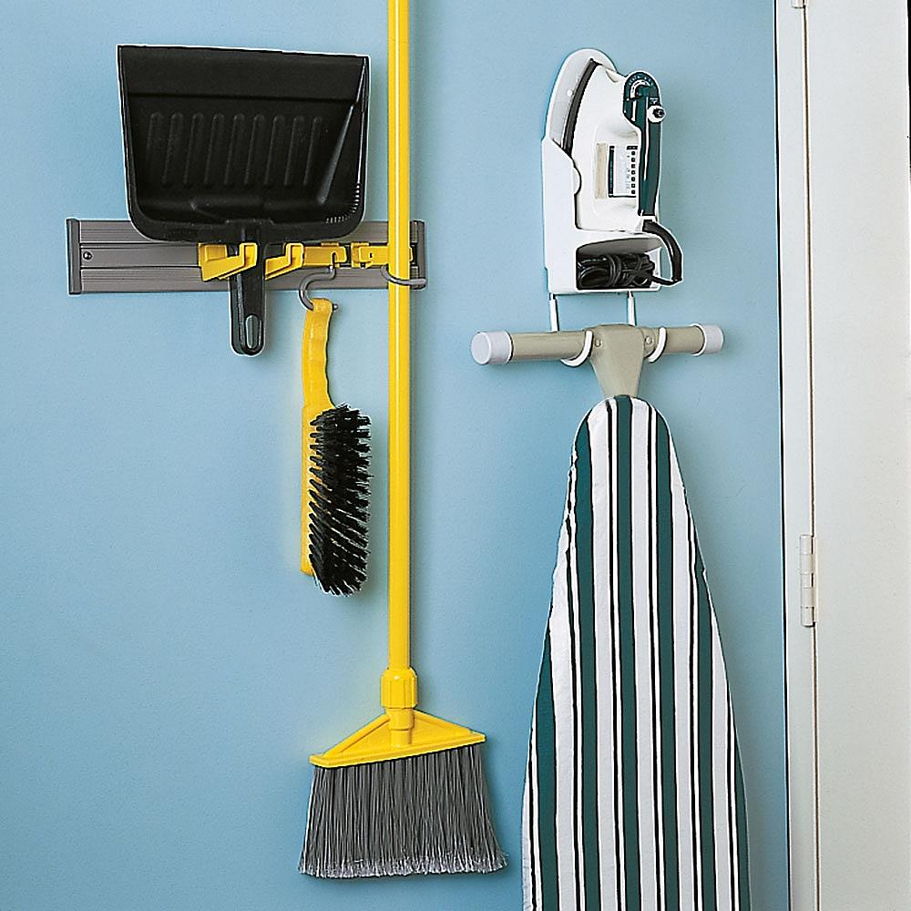 Diese praktische Bügeleisen- und Bügelbretthalterung ermöglicht eine effiziente Aufbewahrung von Bügeleisen mit Bügelbrett, ideal für Gästezimmer. Die Halterung besteht aus einer haltbaren und hitzebeständigen Duroplast-Kunststoffkonstruktion.