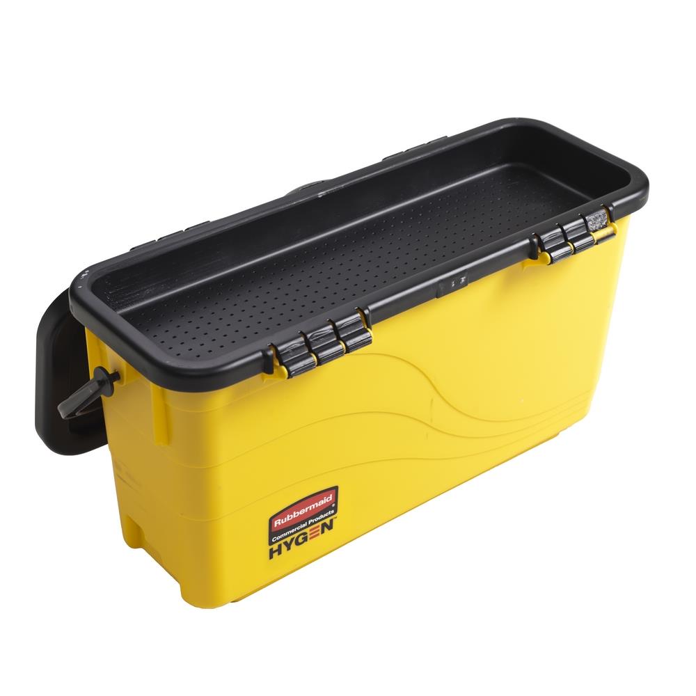 Mit dem Rubbermaid HYGEN Desinfektionseimer mit Sieb können Mikrofaser-Flachwischmopps effizient und ergonomisch befeuchtet werden. Der Reinigungseimer ist ideal zur Verwendung mit den Rubbermaid HYGEN Mikrofaser- Feuchtwischmopps und dem Quick-Connect-Halter von Rubbermaid. Der Putzeimer bietet eine einfach zu reinigende, leichte, nicht poröse Bauweise und ist geeignet für alle Rubbermaid HYGEN Reinigungswagen. Der gänzlich aus Polypropylen Kunststoff bestehende Eimer nimmt 10-20 Mikrofaser-Feuchtwischmopps auf. Mit der Flüssigkeit für einen Nassmopp lassen sich 23 m² reinigen; mit einem vollständig befüllten Eimer (20 Mopps) lassen sich bis zu 450 m² reinigen.
