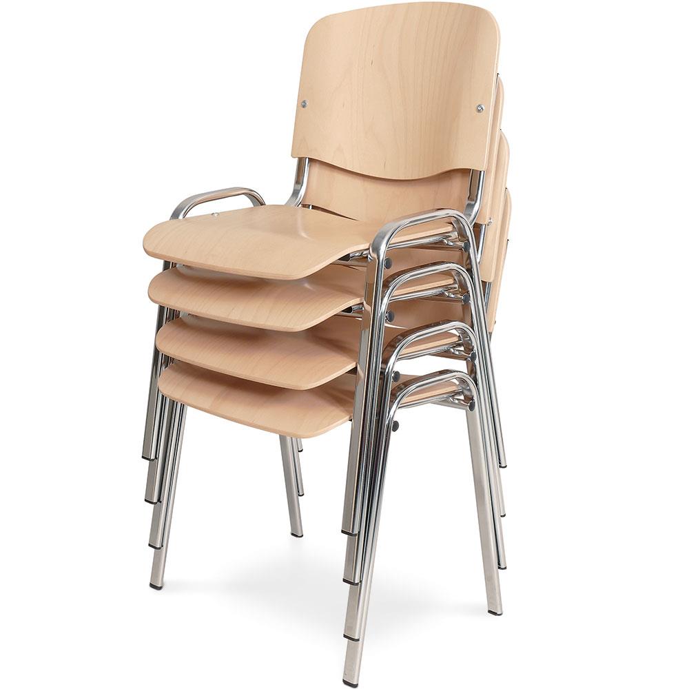 Stapelbarer Besucher-Stuhl geeignet für Besucherräume, Kantinen usw. Sitz und Rückenlehne aus Buchen-Schichtholz. Das Gestell ist aus verchromten Ovalrohr 30x15 mm. Ideal auch als Konferenz-Stuhl oder Pausenraum-Stuhl einsetzbar. Der Stuhl ist mit bodenschonenden Fußgleitern zum Schutz von Bodenoberflächen wie z. B. Fliesen, Linoleum und PVC Böden ausgestattet. Die Stühle sind leicht und platzsparend 12-fach stapelbar.
