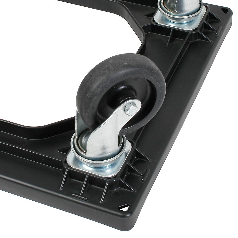 Das elektrisch leitfähige Rollerdeck ist bruch- und schlagfest und mit einem umlaufenden Rand als Abrutschsicherung versehen. 4 kugelgelagerte Lenkrollen aus verzinktem Stahl sowie elektrisch leitfähige, schwarze Gummiräder aus ESD-PP erleichtern Ihnen das sichere Bewegen von schweren Waren. Glatte und pflegeleichte Oberfläche für problemlose Reinigung. Dieser Transportroller ist passgenau für Euroboxen und viele Behälter im Euro-Format 600x400 mm oder 2x 400x300 mm.