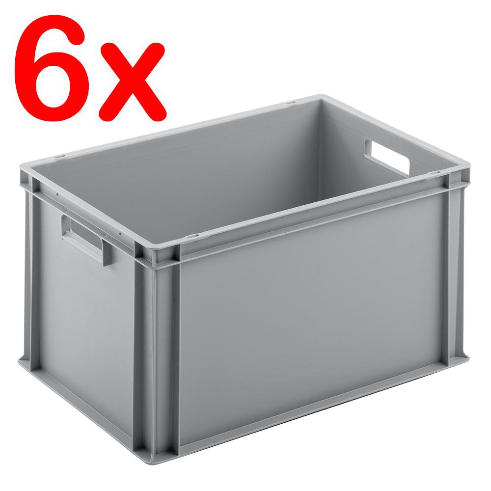 6x Eurostapelbehälter, LxBxH 600x400x320 mm, grau mit Durchfassgriffen