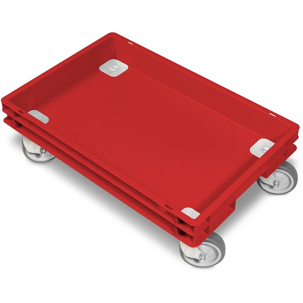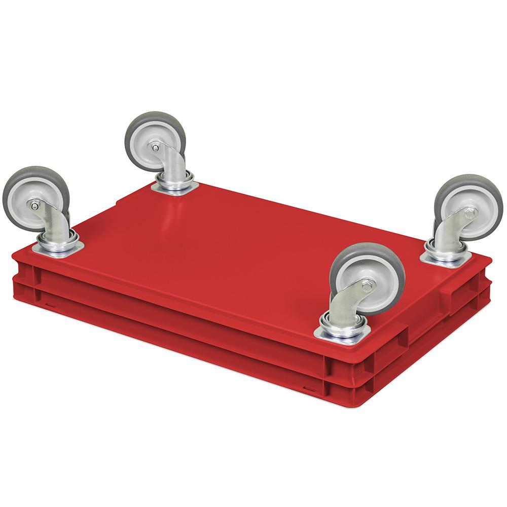 Rollkasten mit 4 Lenkrollen für 600x400mm Eurobehälter, graue Gummiräder, Tragkraft 100 kg, rot