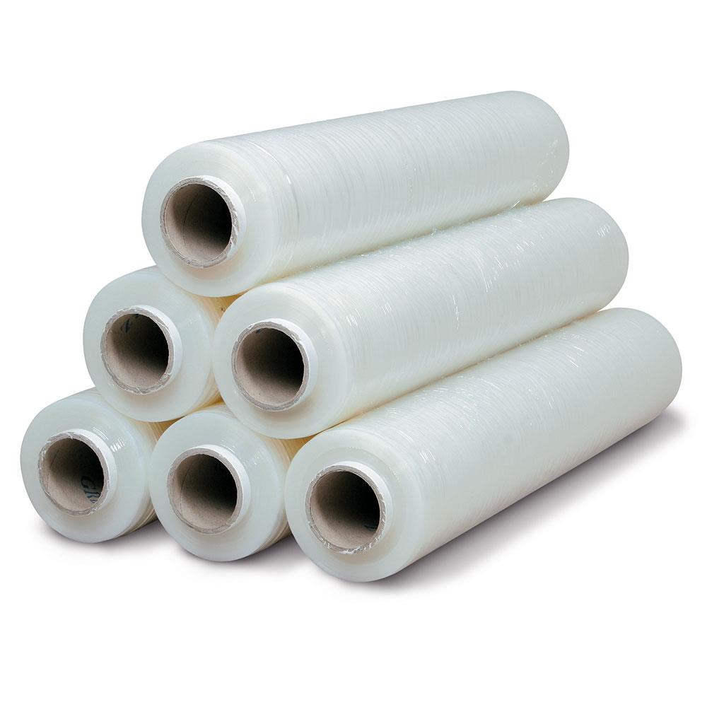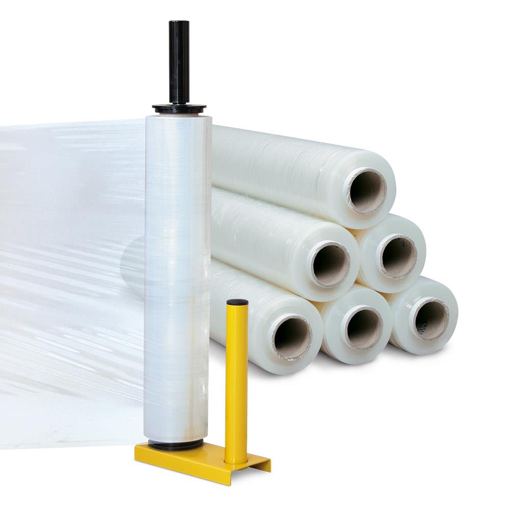 6x PE-Stretchfolienrollen + Hand-Stahlabroller Spar-Set
