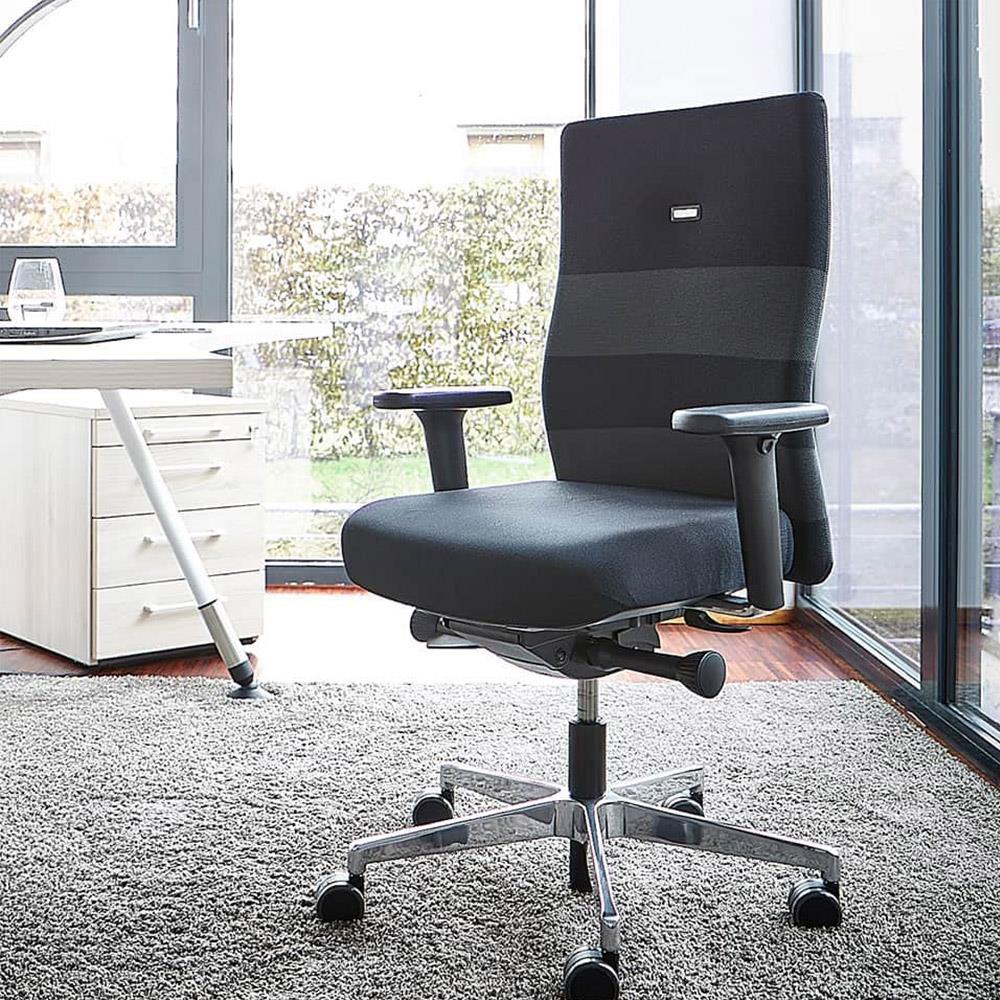 - Stabiles Fußkreuz aus Aluminium und lastabhängig gebremsten Doppellenkrollen für alle Böden