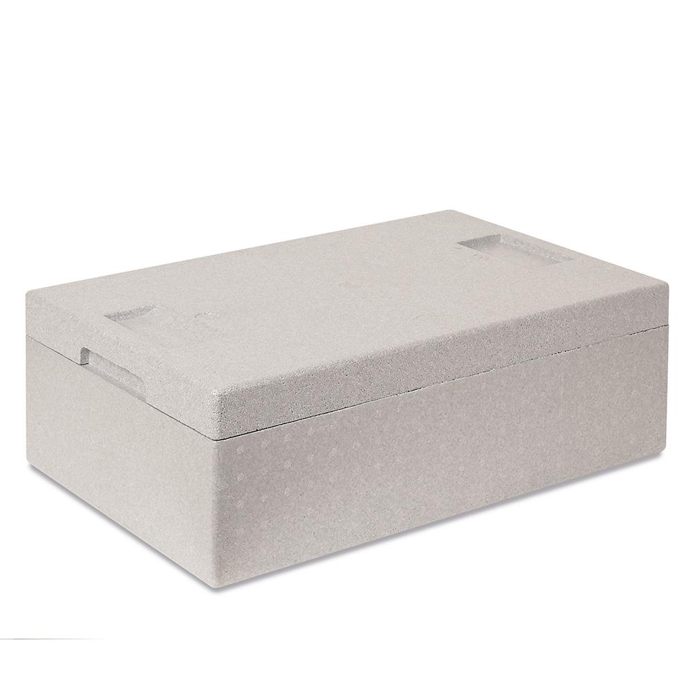 Isolierbehälter mit einem Volumen von 20,4 Liter, Außenmaße LxBxH 545x350x180 mm, Innenmaße LxBxH 505x310x130 mm. Die Isolierbox ermöglicht das problemlose Transportieren und Lagern von temperatursensiblen Waren. Die leichte Isolierbox besteht aus expandiertem Polystyrol (EPS), ist lebensmittelecht und lässt sich mit Euronormboxen kombinieren. Kaltes bleibt länger kalt, Warmes bleibt länger warm. Eine Tiefkühlpizza taut in einer Umgebungstemperatur von 21,5°C innerhalb von ca. 3 Stunden komplett auf. In der Isolierbox dauert es dagegen 11 Stunden. In dieser Isolierbox kann man Lebensmittel also bis zu viermal länger kühl halten.