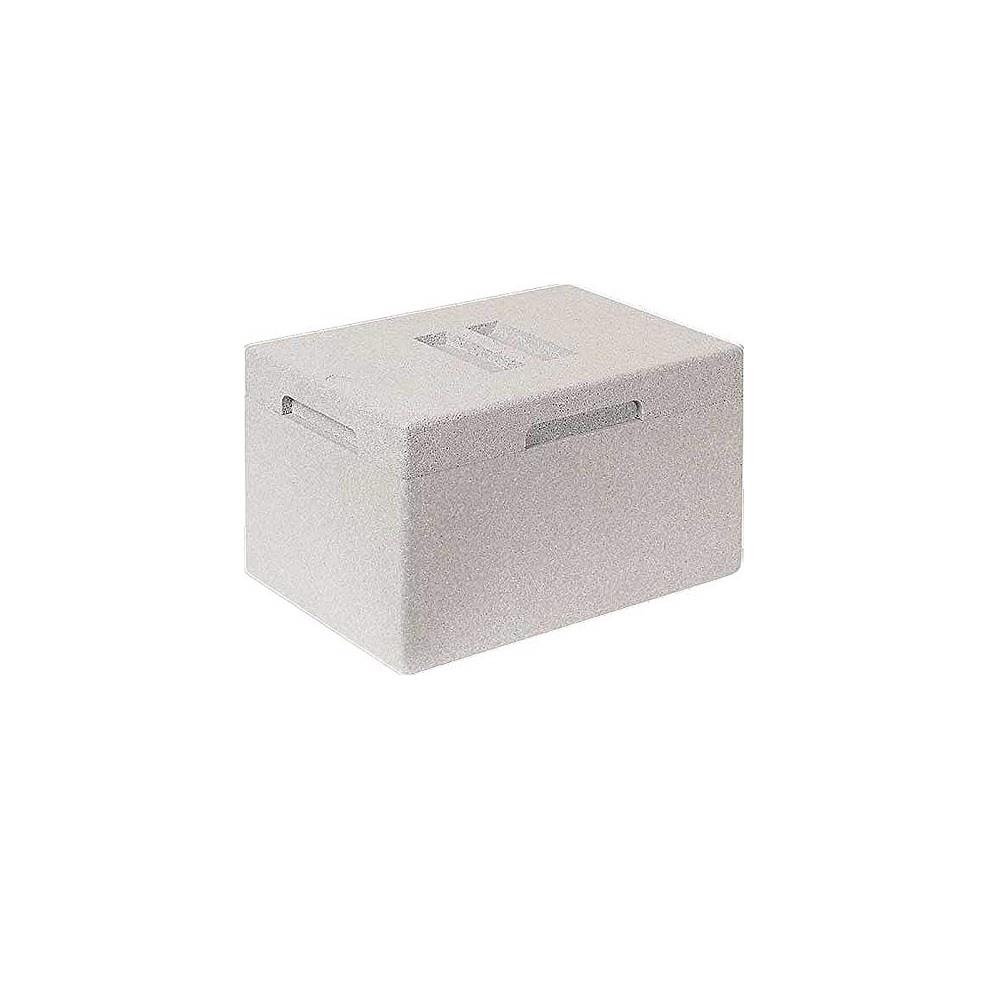 Thermobox aus EPS, mit Deckel. Isolierbehälter mit einem Volumen von 10,4 Liter, Außenmaße LxBxH 350x255x210 mm, Innenmaße LxBxH 310x220x160 mm. Die Isolierbox ermöglicht das problemlose Transportieren und Lagern von temperatursensiblen Waren. Die leichte Isolierbox besteht aus expandiertem Polystyrol (EPS), ist lebensmittelecht und lässt sich mit Euronormboxen kombinieren. Kaltes bleibt länger kalt, Warmes bleibt länger warm. Eine Tiefkühlpizza taut in einer Umgebungstemperatur von 21,5°C innerhalb von ca. 3 Stunden komplett auf. In der Isolierbox dauert es dagegen 11 Stunden. In dieser Isolierbox kann man Lebensmittel also bis zu viermal länger kühl halten.