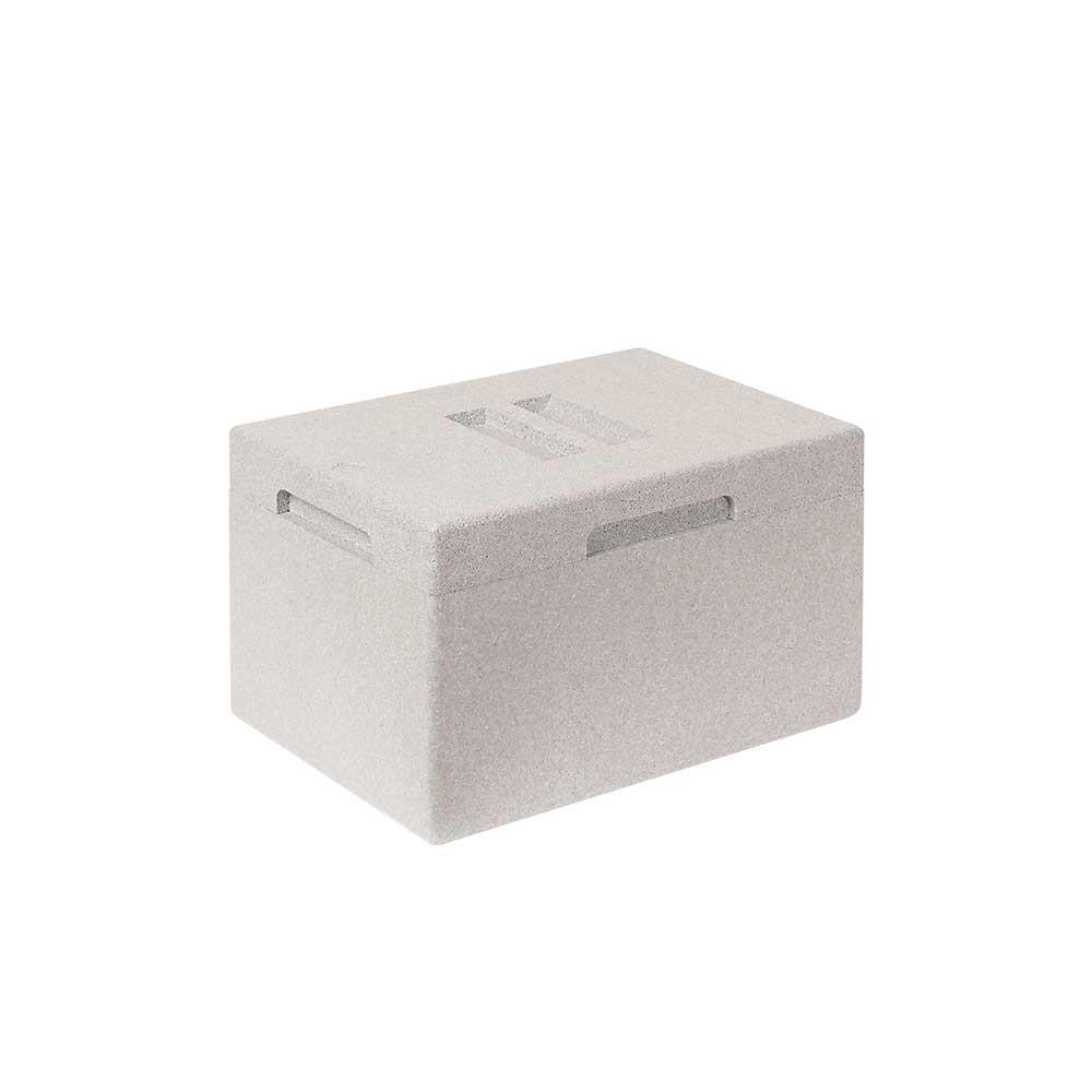 Isolierbehälter mit einem Volumen von jeweils 10,4 Liter, Außenmaße LxBxH 350x255x210 mm, Innenmaße LxBxH 310x220x160 mm. Die Isolierbox ermöglicht das problemlose Transportieren und Lagern von temperatursensiblen Waren. Die leichte Isolierbox besteht aus expandiertem Polystyrol (EPS), ist lebensmittelecht und lässt sich mit Euronormboxen kombinieren. Kaltes bleibt länger kalt, Warmes bleibt länger warm. Eine Tiefkühlpizza taut in einer Umgebungstemperatur von 21,5°C innerhalb von ca. 3 Stunden komplett auf. In der Isolierbox dauert es dagegen 11 Stunden. In dieser Isolierbox kann man Lebensmittel also bis zu viermal länger kühl halten.