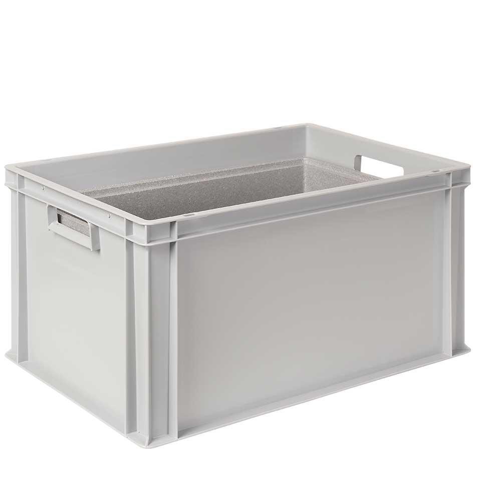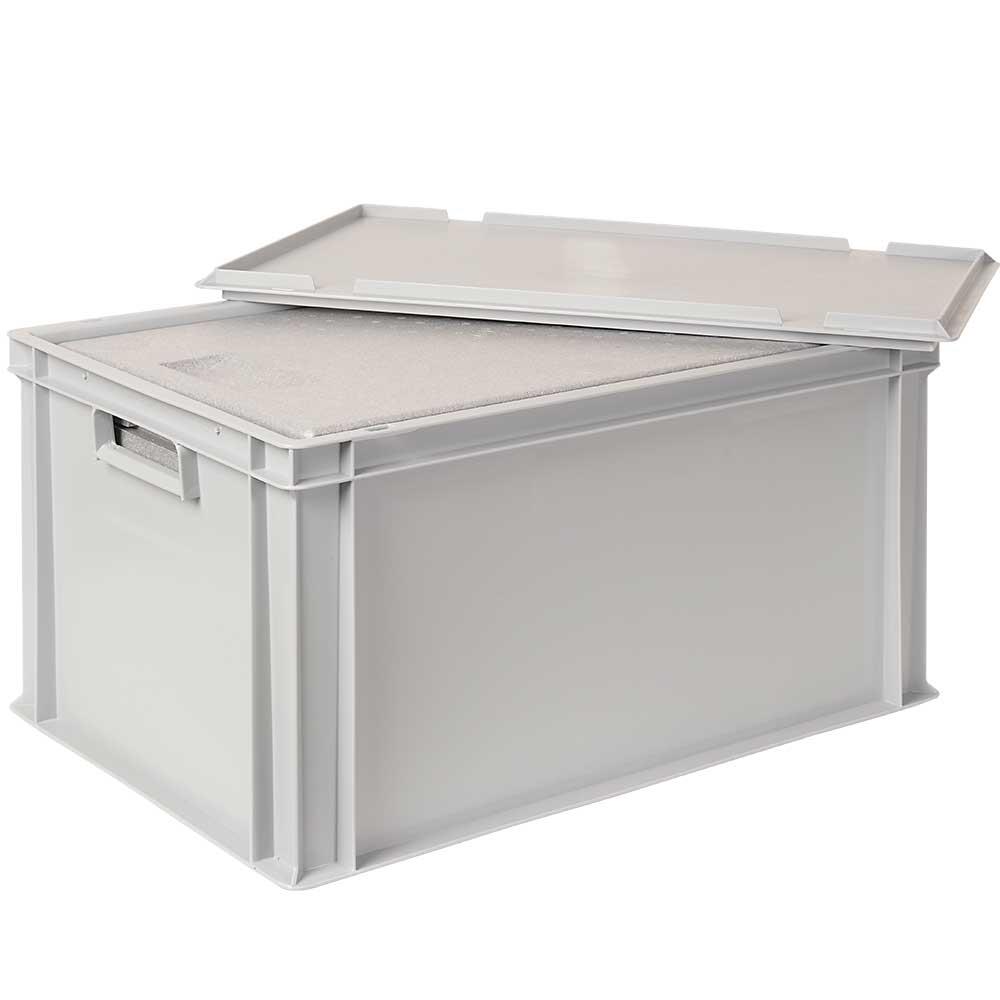 Isolierbehälter mit einem Volumen von 31,5 Liter. Die Isolierbox ermöglicht das problemlose Transportieren und Lagern von temperatursensiblen Waren. Die leichte Isolierbox besteht aus expandiertem Polystyrol (EPS), ist lebensmittelecht und lässt sich mit Euronormboxen kombinieren. Kaltes bleibt länger kalt, Warmes bleibt länger warm. Eine Tiefkühlpizza taut in einer Umgebungstemperatur von 21,5°C innerhalb von ca. 3 Stunden komplett auf. In der Isolierbox dauert es dagegen 11 Stunden. In dieser Isolierbox kann man Lebensmittel also bis zu viermal länger kühl halten.