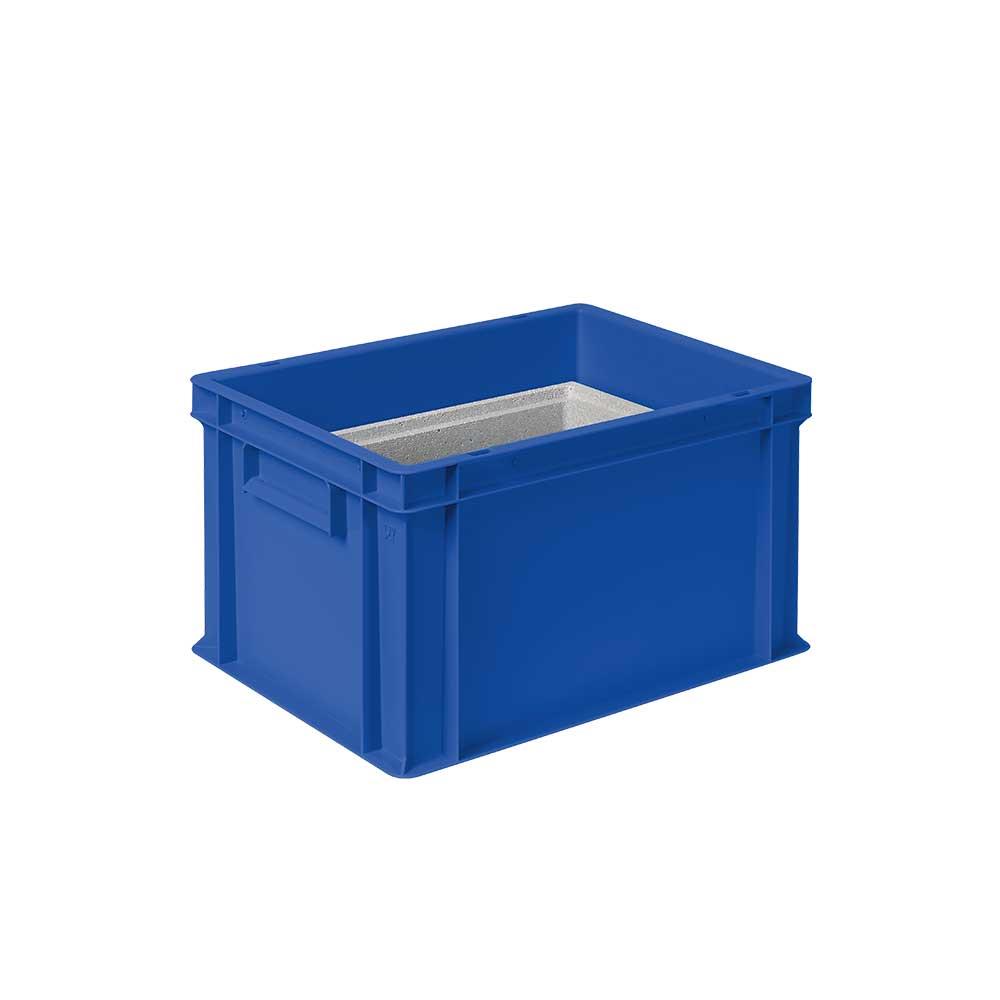 Praktische Isobox aus EPS Kunststoff in Eurobox als Schutz. Als zusätzliche Sicherung zum Schutz vor Beschädigungen des Thermobehälters ist die Eurobox mit einem Auflagedeckel ausgestattet.