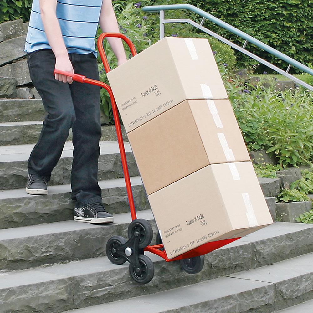 "Treppenkarre aus Stahl, BxTxH 600x560x1210 mm, Tragkraft 150 kg, RAL 3000 Feuerrot"