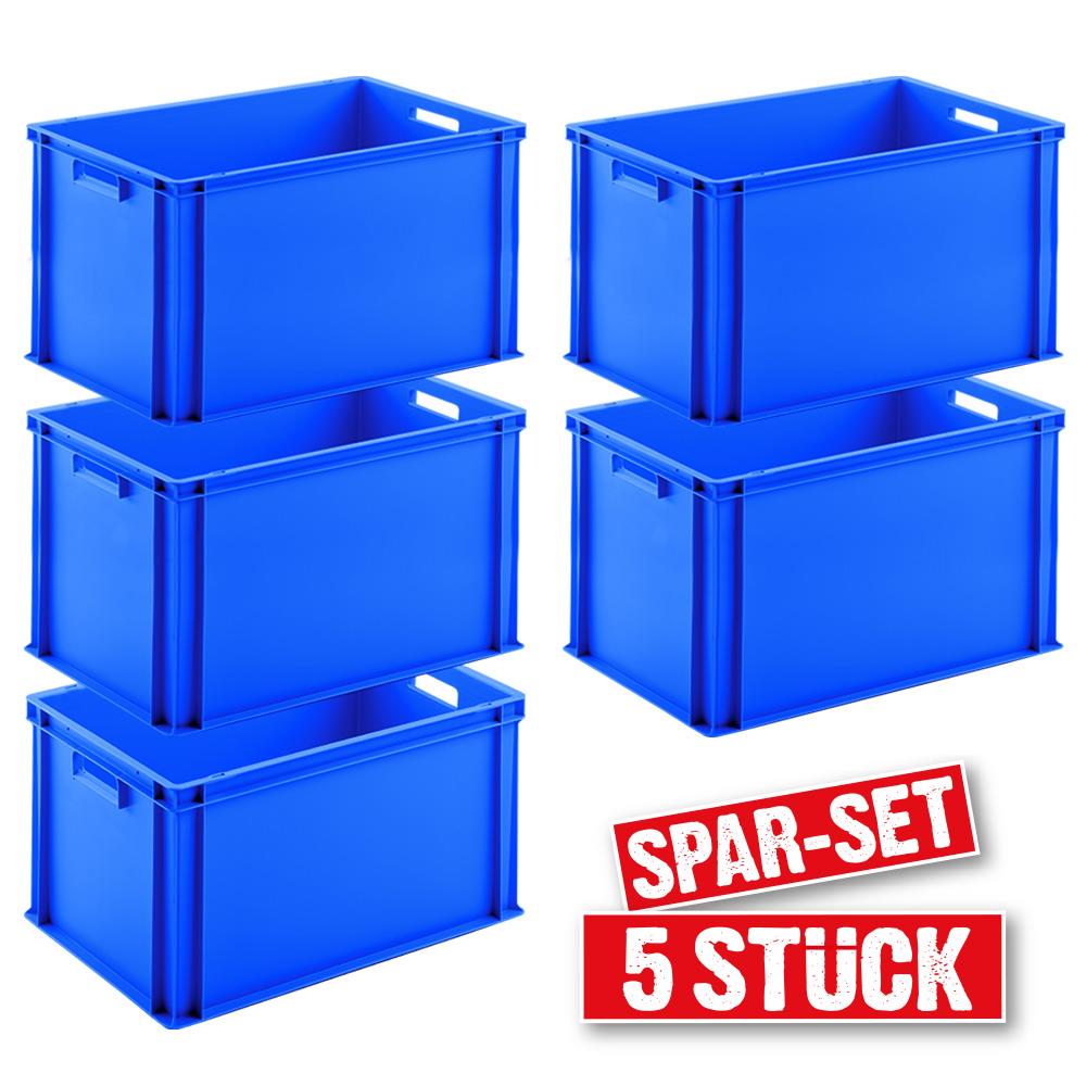 Set mit 5 Euro-Stapelbehältern, LxBxH 600x400x320 mm, blau