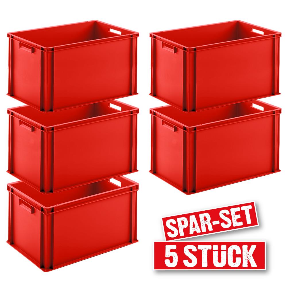 Set mit 5 Euro-Stapelbehältern, LxBxH 600x400x320 mm, rot