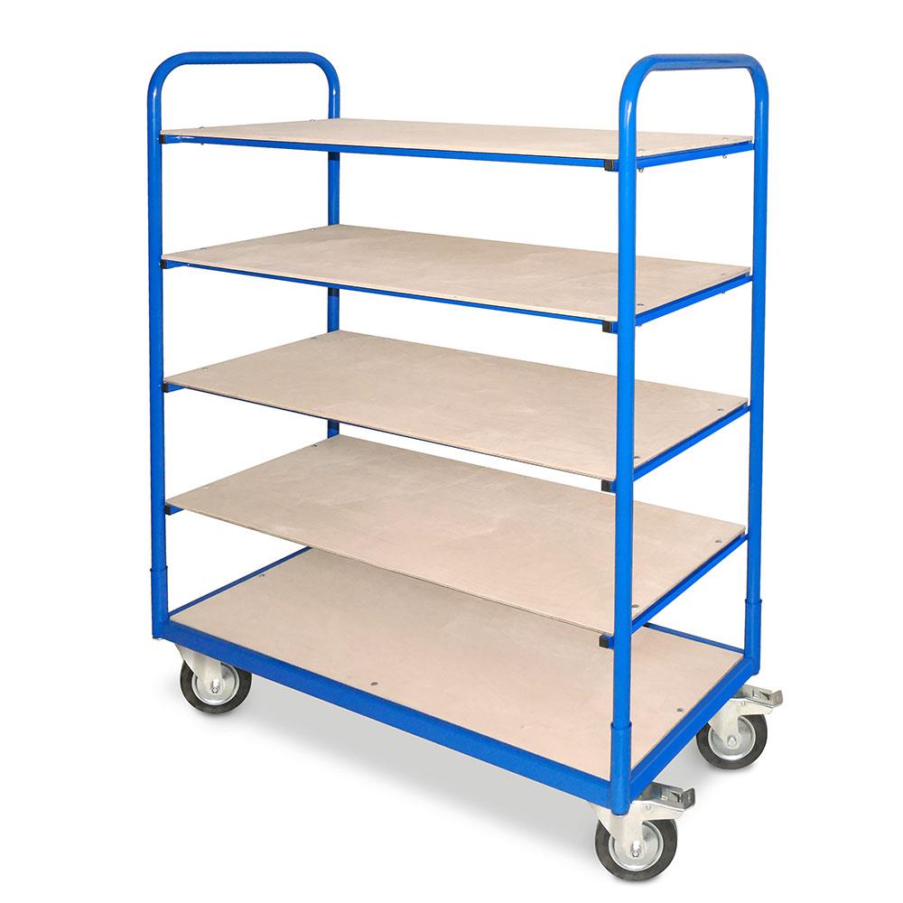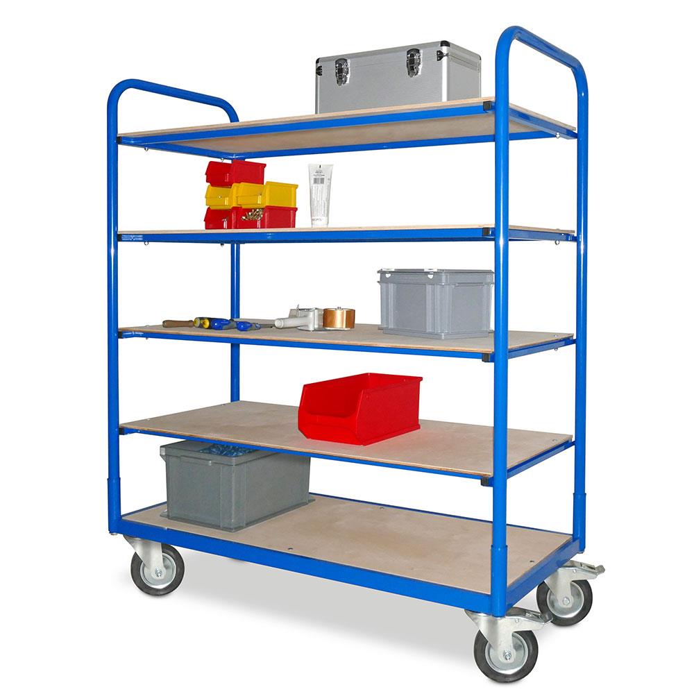 Etagenwagen mit 5 Ebenen, BxTxH 1310x580x1545 mm, 4 Lenkrollen, 2 Rollen mit Feststellbremse