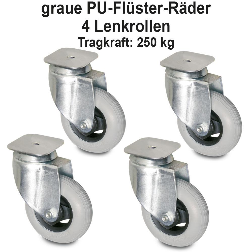 Transportroller mit leichtgängigen und geräuscharmen Flüster-Rollen aus geschäumtem Polyurethan.