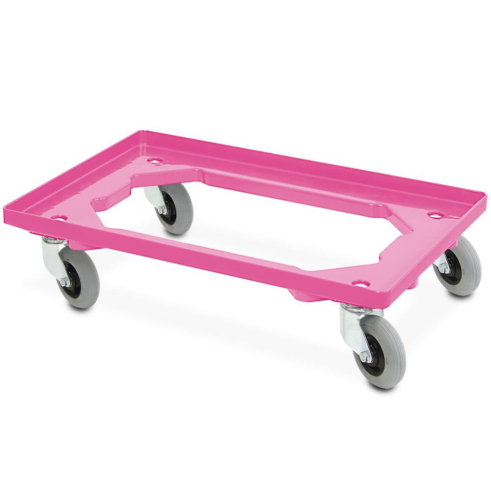 "ABS-Kunststoff-Flüster-Roller für Euro-Stapelbehälter 600x400 mm, violett, 100 mm PU-Rad, Deck offen, Tragkraft 250 kg"