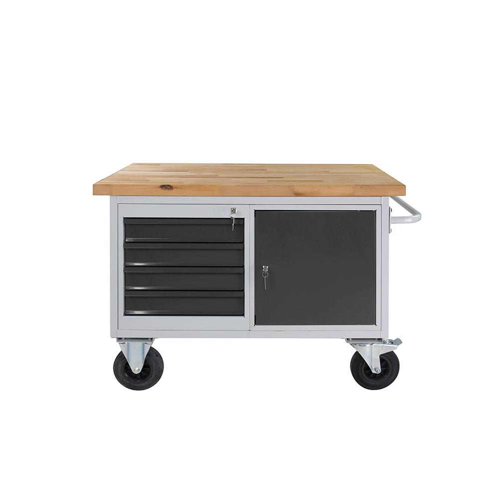 Werkstatt- und Montagewagen mit 1 Tür und 4 Schubladen in anthrazitgrau, LxBxH 1300x600x830 mm, Tragkraft 500 kg
