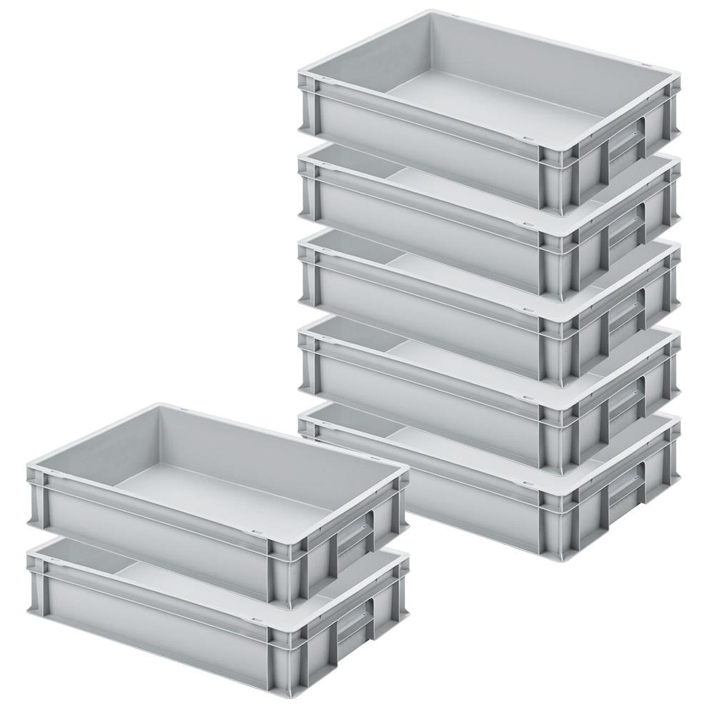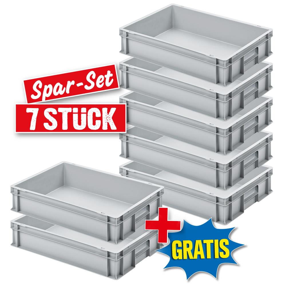Set mit 5 Euro-Stapelbehältern + 2 Behälter GRATIS, Farbe grau, LxBxH 600x400x120 mm
