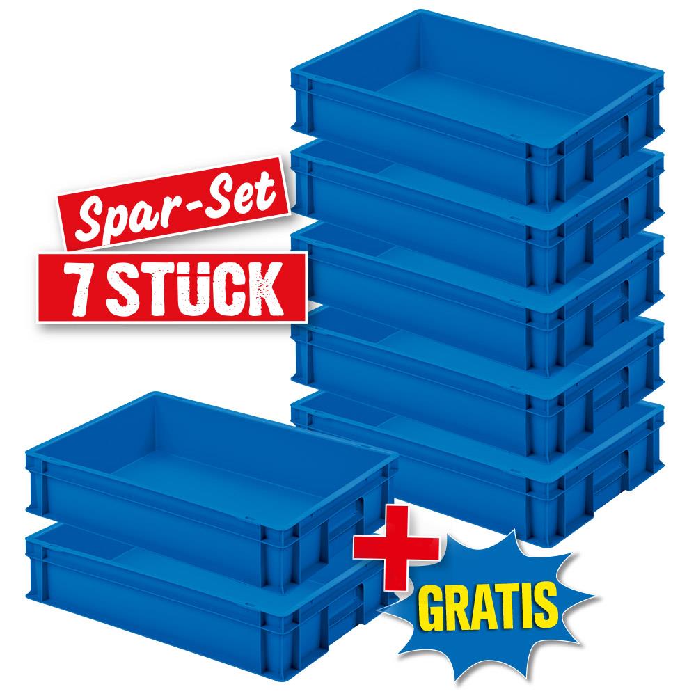Set mit 5 Euro-Stapelbehältern + 2 Behälter GRATIS, Farbe blau, LxBxH 600x400x120 mm