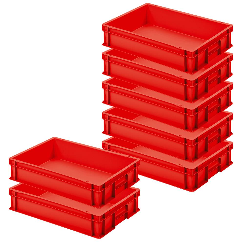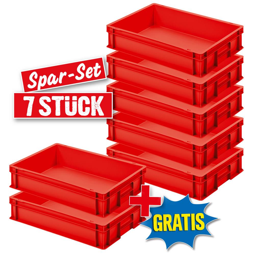 Set mit 5 Euro-Stapelbehältern + 2 Behälter GRATIS, Farbe rot, LxBxH 600x400x120 mm