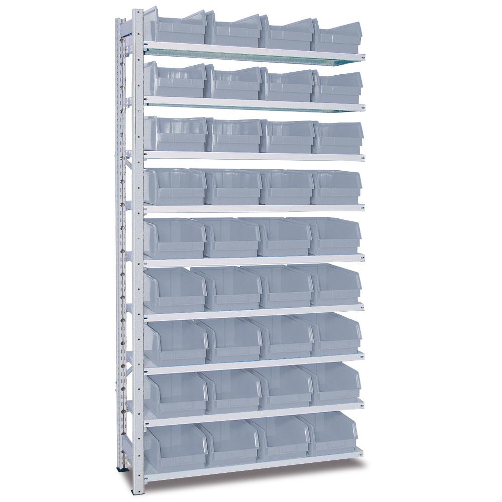 Anbauregal, verzinkt, BxTxH 1035x315x2000 mm, 9 Böden, 36 Sichtboxen LB 3 Farbe grau