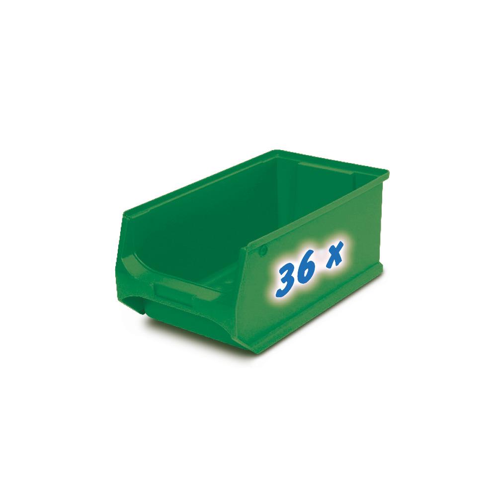 Anbauregal, verzinkt, BxTxH 1035x315x2000 mm, 9 Böden, 36 Sichtboxen LB 3 Farbe grün