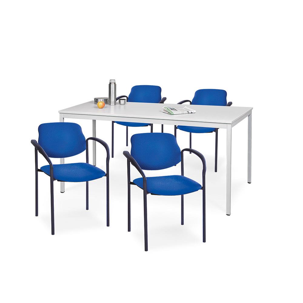 5-teilige Sitzgruppe: 4 Armlehnenstühle, Bezug blau + 1 Tisch, BxTxH 1600x800x750 mm