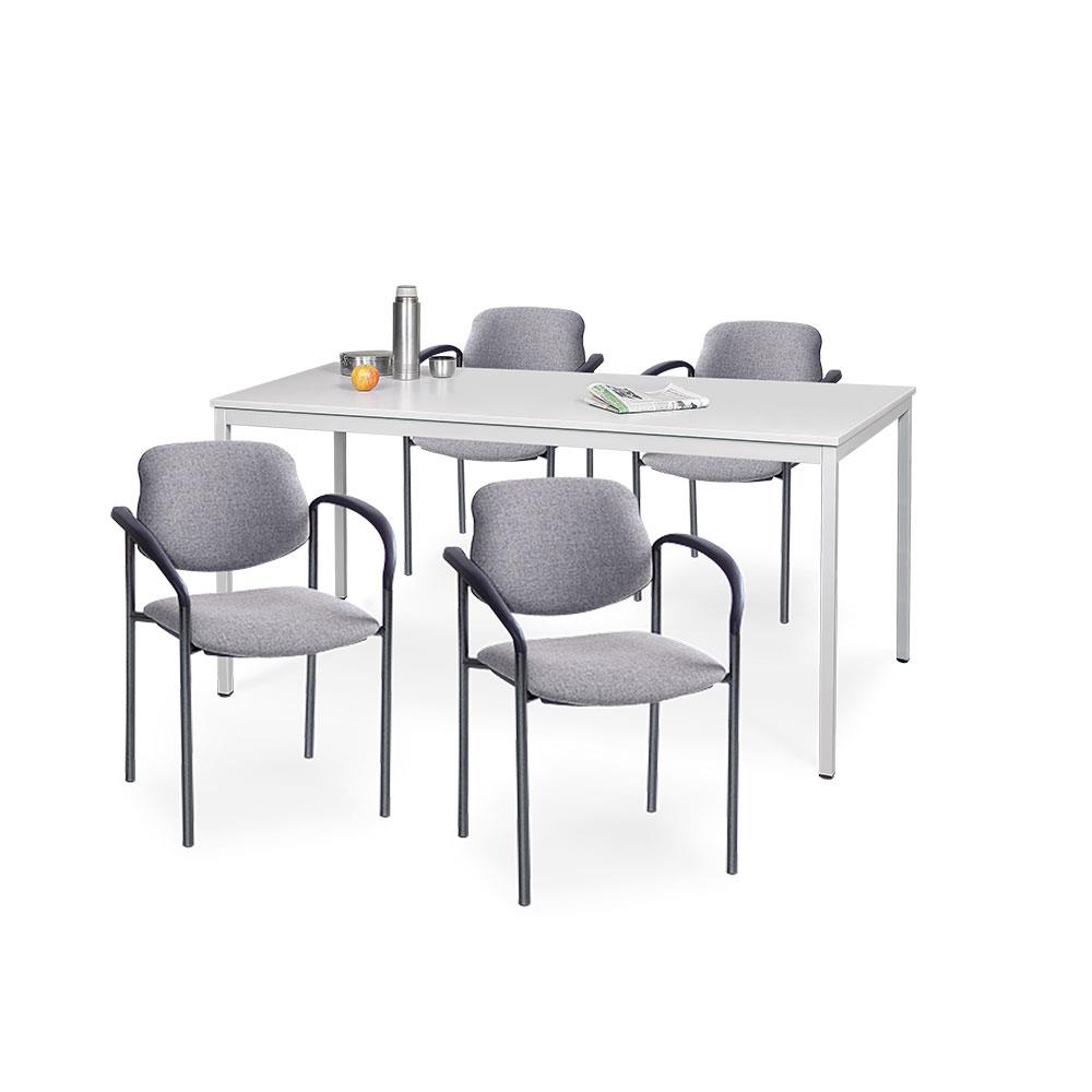 5-teilige Sitzgruppe: 4 Armlehnenstühle, Bezug grau + 1 Tisch, BxTxH 1600x800x750 mm