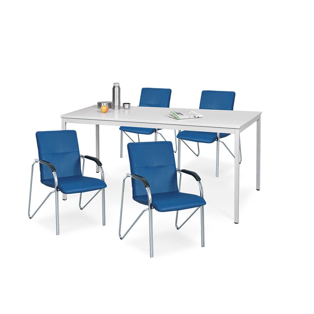 5-teilige Sitzgruppe: 4 Stapelsessel, Bezug blau + 1 Tisch, BxTxH 1600x800x750 mm