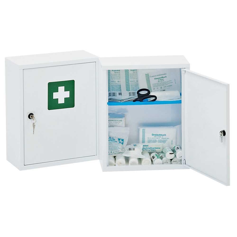 Verbandschrank aus Stahlblech, DIN 13157, BxTxH 300x140x370 mm, perlweiß