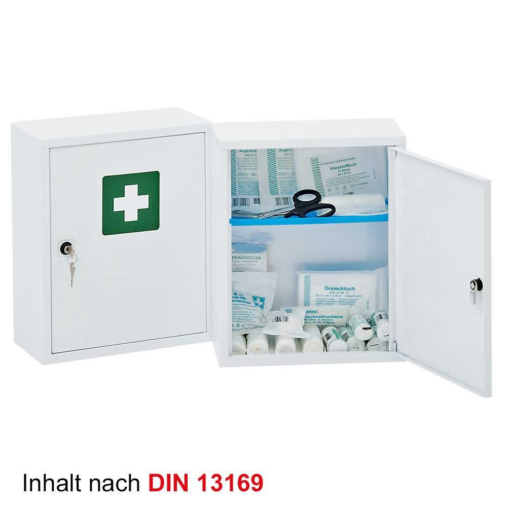 Verbandschrank aus Stahlblech, DIN 13169, BxTxH 300x140x370 mm, perlweiß